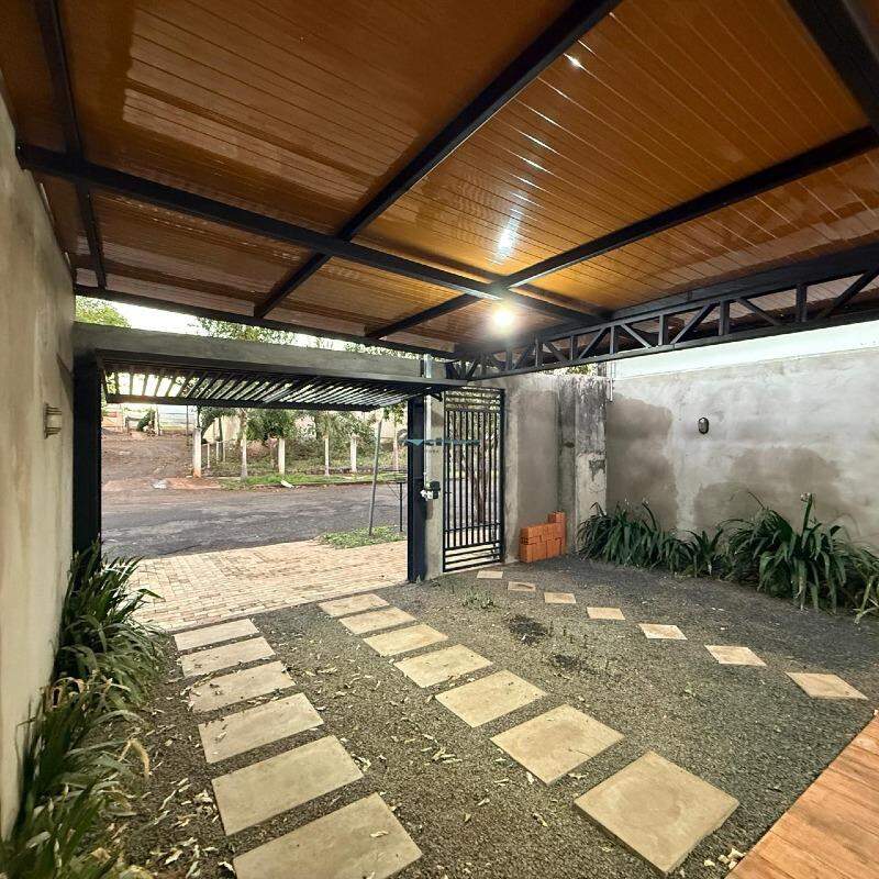 Garagem coberta com churrasqueira