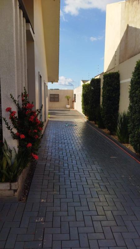 O imóvel conta com passagem lateral ampla e bastante sobra de terreno, oferecendo excelente aproveitamento da área externa, com possibilidade para lazer, ampliação ou futura edificação. A fachada apresenta detalhes em tijolo aparente, muro e gradil em ferro, além de portão para veículos e pedestres. O jardim frontal com paisagismo valoriza o imóvel.