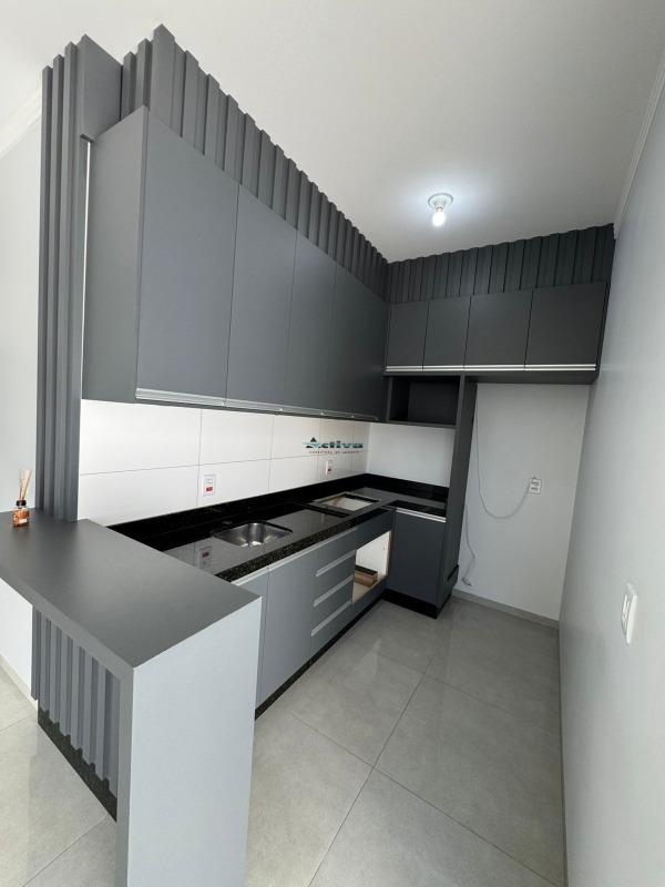 O imóvel conta com uma suíte e mais dois quartos, além de banheiro social. A área social possui sala de estar integrada à cozinha, que já dispõe de móveis planejados, proporcionando melhor aproveitamento dos espaços e funcionalidade no dia a dia. Também possui lavanderia.